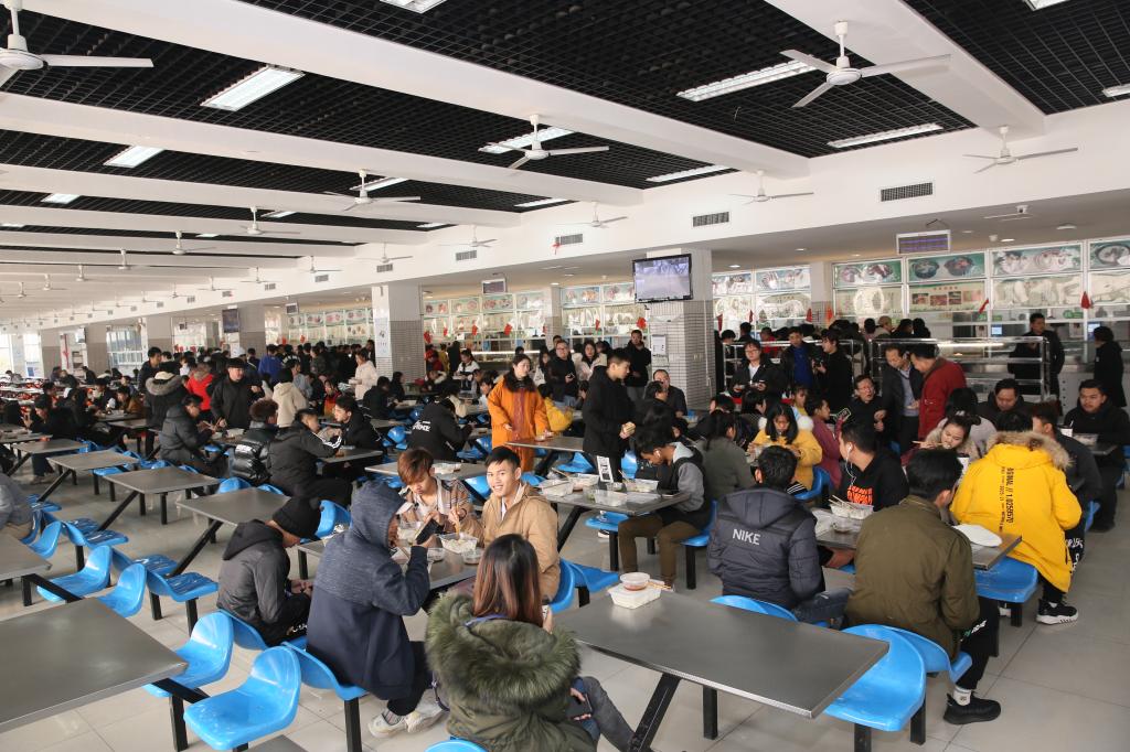上午10点半,学院南、西、北三个校区的餐厅里,已有不少师生陆续拿着餐券在各个橱窗前排队等候,不一会儿,一盘盘热气腾腾、美味可口的饺子就已上桌。虽然室外寒气袭人,但每个餐厅里却是热闹非凡、温暖四溢。吃着自己亲手包的饺子,大家有说有笑,心里乐滋滋的。