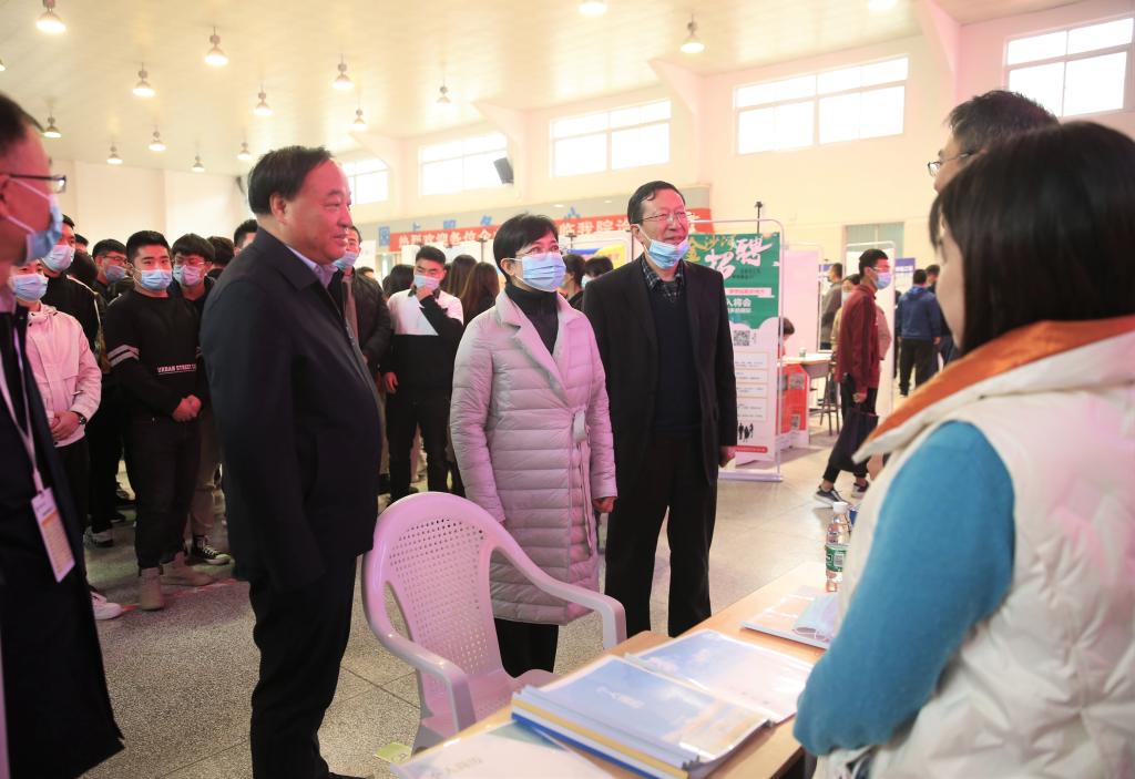 党委书记陈宁、校长王周锁、党委副书记任得元及招生就业处处长袁军儒等到招聘会现场,对招聘企业代表进行慰问,询问其招聘计划、目前的招聘情况及往届毕业生在企业的发展状况等。校领导表示,非常欢迎和感谢各招聘企业来伟德官网招聘选拔人才,更期待企业能够与伟德官网加强深度校企合作。同时,学校领导也与现场求职学生进行了亲切交谈,询问其求职现状,积极鼓励求职学生不忘初心、转变观念、扎根基层、服务社会。