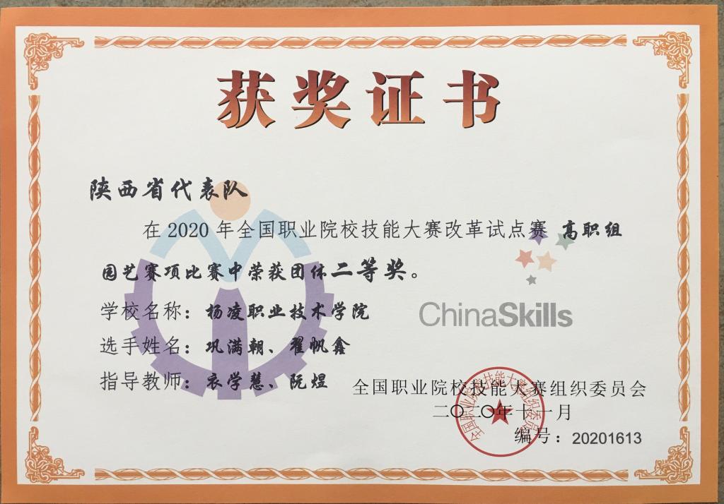 11月6日至9日,2020年全国职业院校技能大赛改革试点赛高职组园艺赛项在山东潍坊举行,来自28所院校的56名参赛选手同台竞技。经过激烈角逐,伟德官网参赛选手巩满朝、翟帆鑫荣获大赛二等奖,名列全国第五。