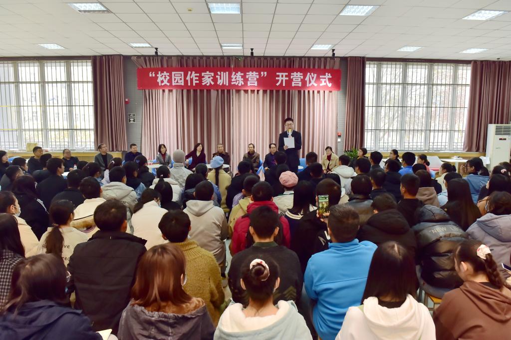 11月21日下午,伟德官网“校园作家训练营”在西校区图书馆举行开营仪式。副校长祝战斌致辞,图书馆馆长王红相、文理分院院长王云江,中国作协、省作协十位作家,以及部分教师代表、团委《职苑文艺》编辑部、各二级学院文学社成员共300余人参加了开营仪式。仪式由学工部副部长、团委书记陈吼主持。