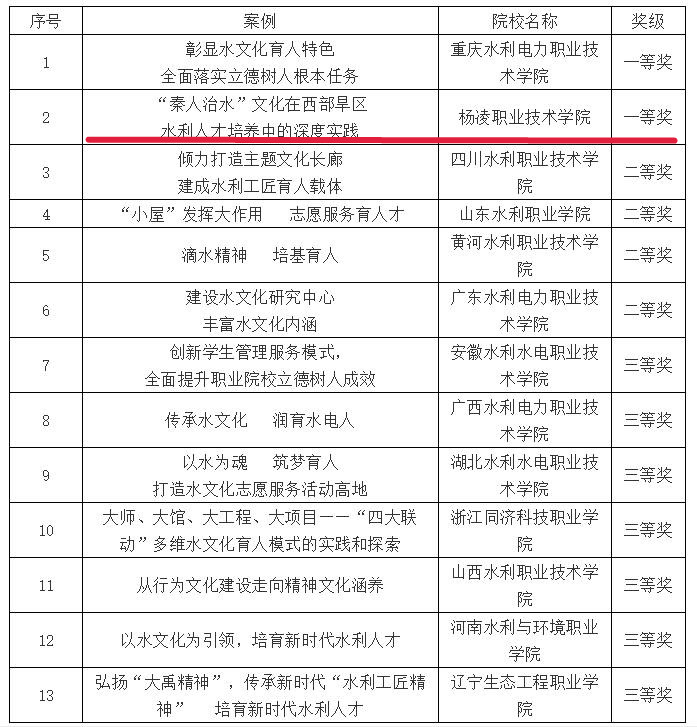 近日,中国水利教育协会公布了全国水利院校水文化育人优秀案例评选结果,伟德官网报送的水文化育人典型案例《“秦人治水”文化在西部旱区水利人才培养中的深度实践》获一等奖。