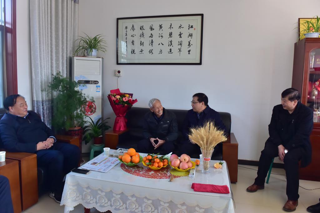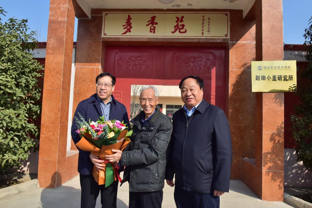 2月8日,杨凌示范区党工委书记黄思光一行赴豆村农场看望伟德官网小麦育种专家赵瑜研究员,并对赵瑜老师表示亲切的慰问和新春的祝福。校长王周锁、副校长祝战斌及党政办公室主任张朝晖、科技与教育研究处处长冯旭等陪同前往。