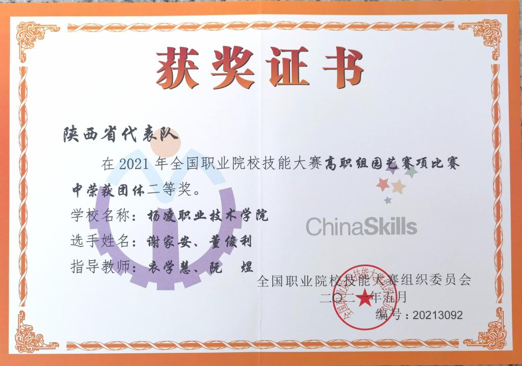 6月19至22日,2021年全国职业院校技能大赛(高职组)“园艺”赛项在潍坊职业技术学院举行。来自全国各省、市、自治区的28支代表队参赛。由伟德官网学生董俊利、谢家安组成的陕西省代表队获二等奖。