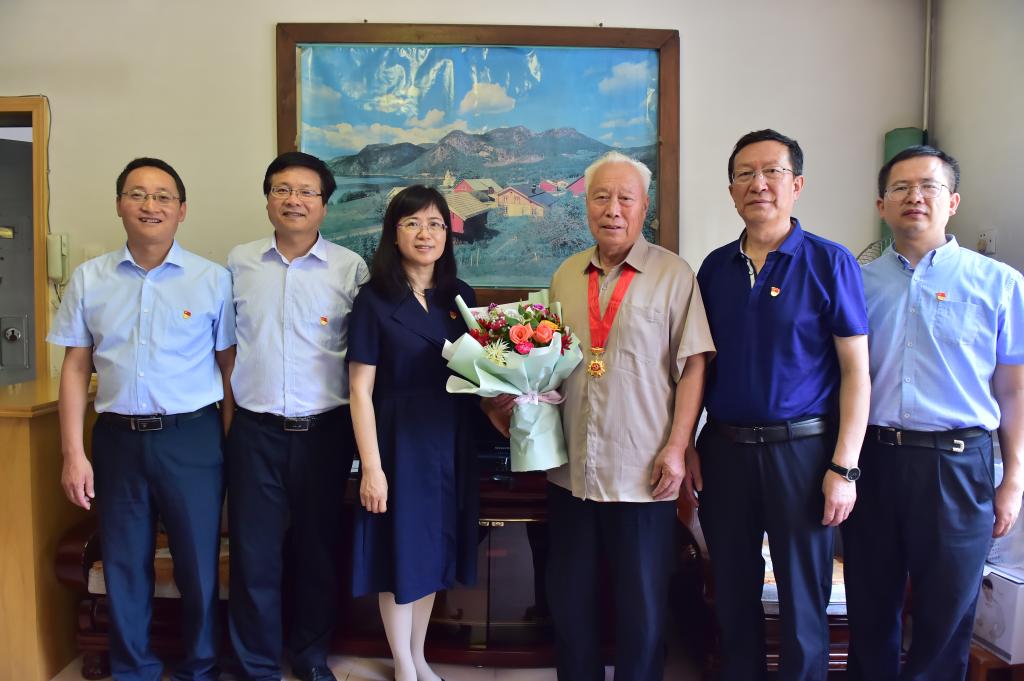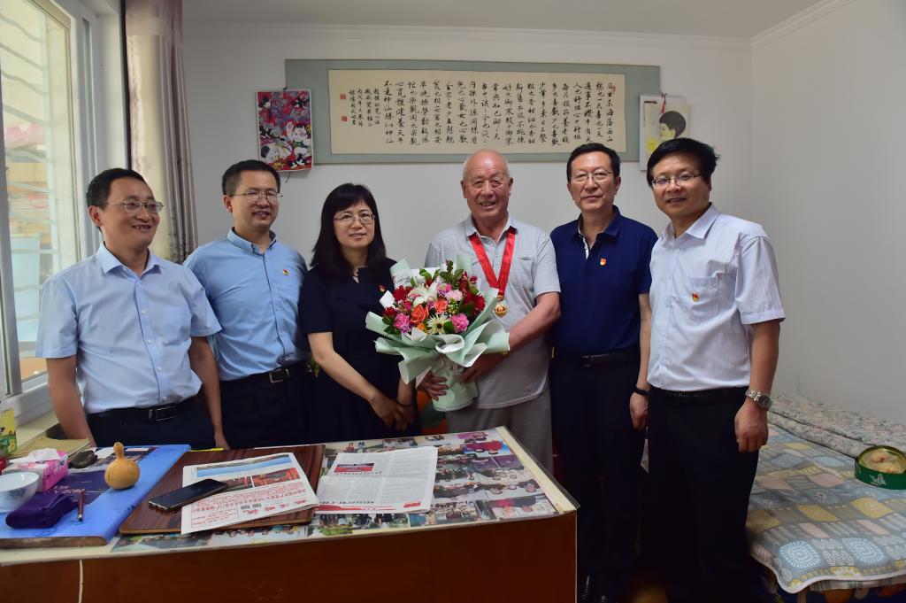 7月7日,校党委书记陈宁、副书记任得元走访慰问伟德官网“光荣在党50年”老党员,为他们送去组织的温暖与关怀,颁发“光荣在党50年”纪念章。党委委员、组织部部长田争运,党委委员、党政办公室主任张朝晖,工会、离退休工作处董育公参加慰问。