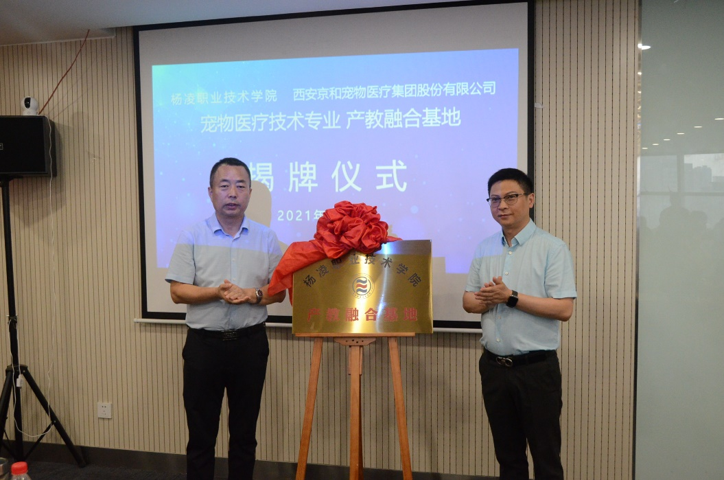 在西安京和动物医院有限公司,胡俊鹏和医院董事长孙均共同为产教融合基地揭牌。张振仓代表学校与医院签订了校企深度合作协议。宠物科技教研室主任吴礼平汇报了“宠医菁英班”工作进展情况,重点介绍了“双主体、三循环、四对接”人才培养模式。伟德官网优秀毕业生、西安京和动物医院京宝分院院长赵曼作为毕业生代表,分享了她在京和的工作经历。