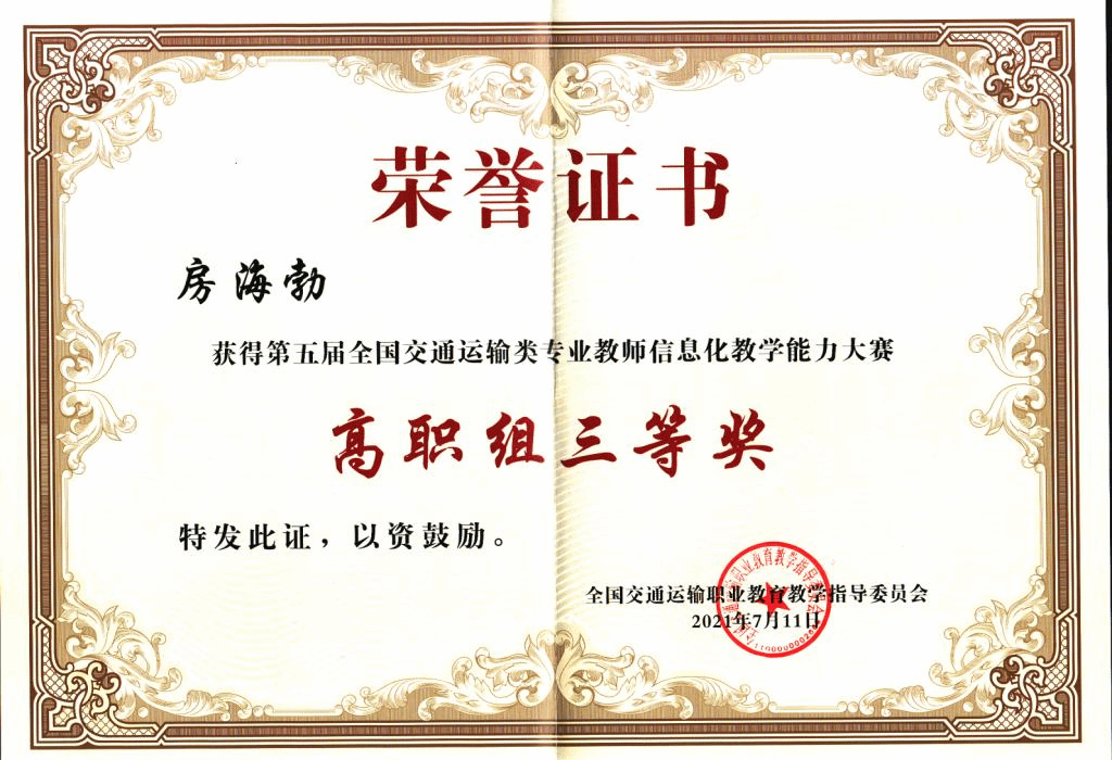 7月8日至11日,第五届全国交通运输类专业教师信息化教学能力大赛总决赛在河南交通职业技术学院举行,伟德官网交通与测绘工程学院教师房海勃、宋丽梅分别获三等奖,学校获信息化教学创新典范奖。