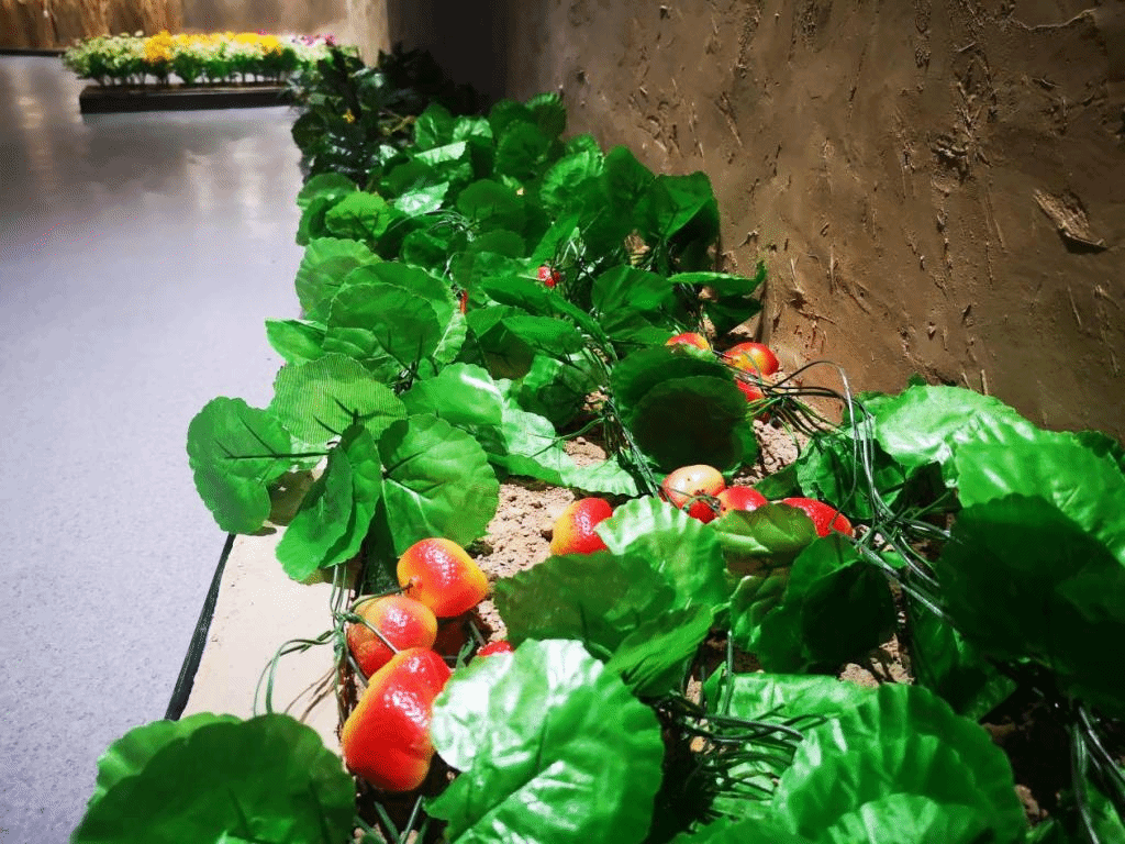 耕读体验展厅对隋代北方农家小院和古代学堂进行场景还原,其中农家小院展示的小麦、桃花、西瓜、草莓等实物均为伟德官网科研成果。除此之外还有瓦罐、石碾、竹篮、水缸等古代农家生活用品,展现了真实的古代农家生活。