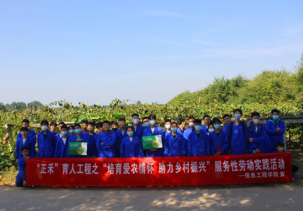 此次劳动实践活动是学校“正禾”育人工程的“耕读修身”项目中的必选活动之一。信息工程学院以耕读精神砥砺学生,让学生深入田间地头,用汗水和协作配合培养其关注“三农”的意识及服务“乡村振兴”的决心。