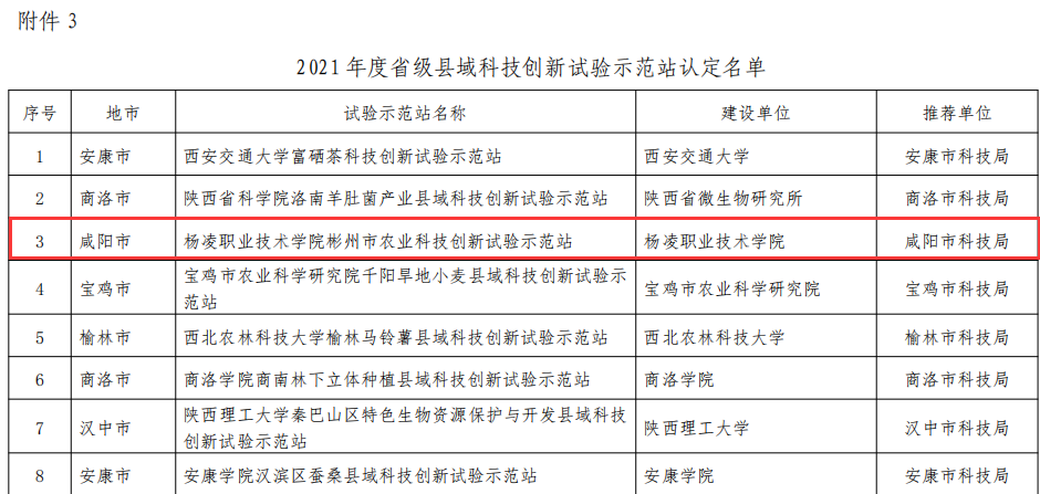 近日,省科学技术厅公布了2021年度农业农村领域省级科技创新平台认定和评估结果,伟德官网彬州市农业科技创新试验示范站被认定为省级县域科技创新试验示范站。