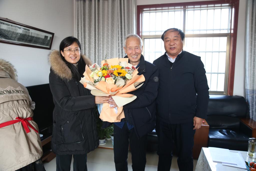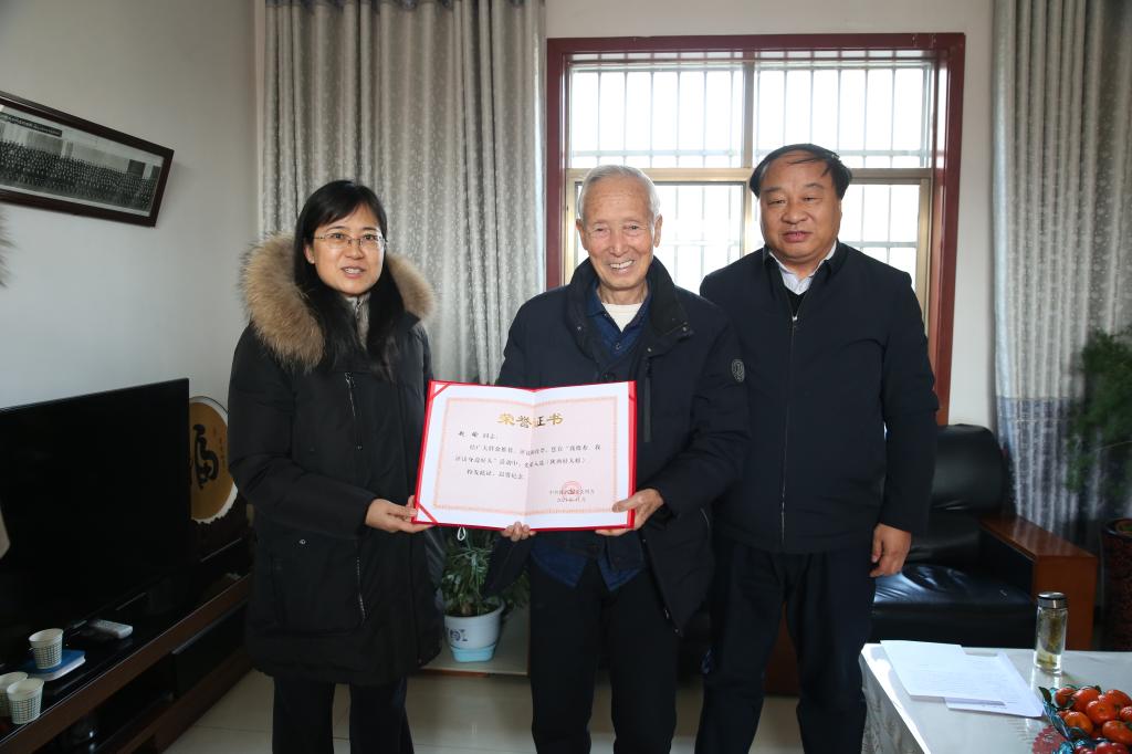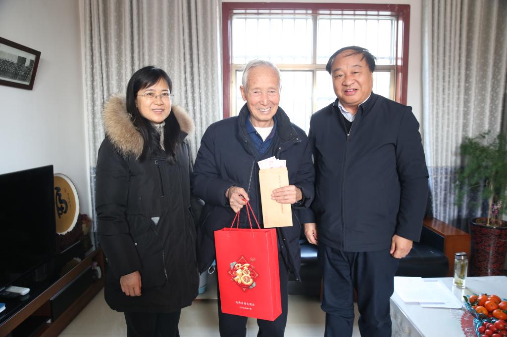 在赵瑜家中,党委书记陈宁、校长王周锁代表省委文明办、杨凌示范区文明办和学校精神文明建设委员会向赵瑜送上了陕西省道德模范慰问信、慰问金和慰问品,颁发了陕西好人荣誉证书,亲切询问了赵瑜的身体情况和生活状况,并叮嘱他要保重身体,在新的一年里,继续发挥好示范引领作用,抒写道德模范和陕西好人新故事。
