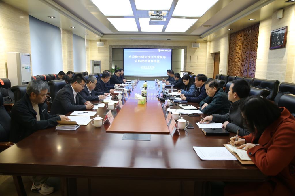 3月3日上午,榆林职业技术学院党委书记贺利贵、院长陈保平一行15人来学校考察交流。党委书记陈宁主持座谈会,校长王周锁,党委副书记任得元,副校长祝战斌等参加座谈交流。