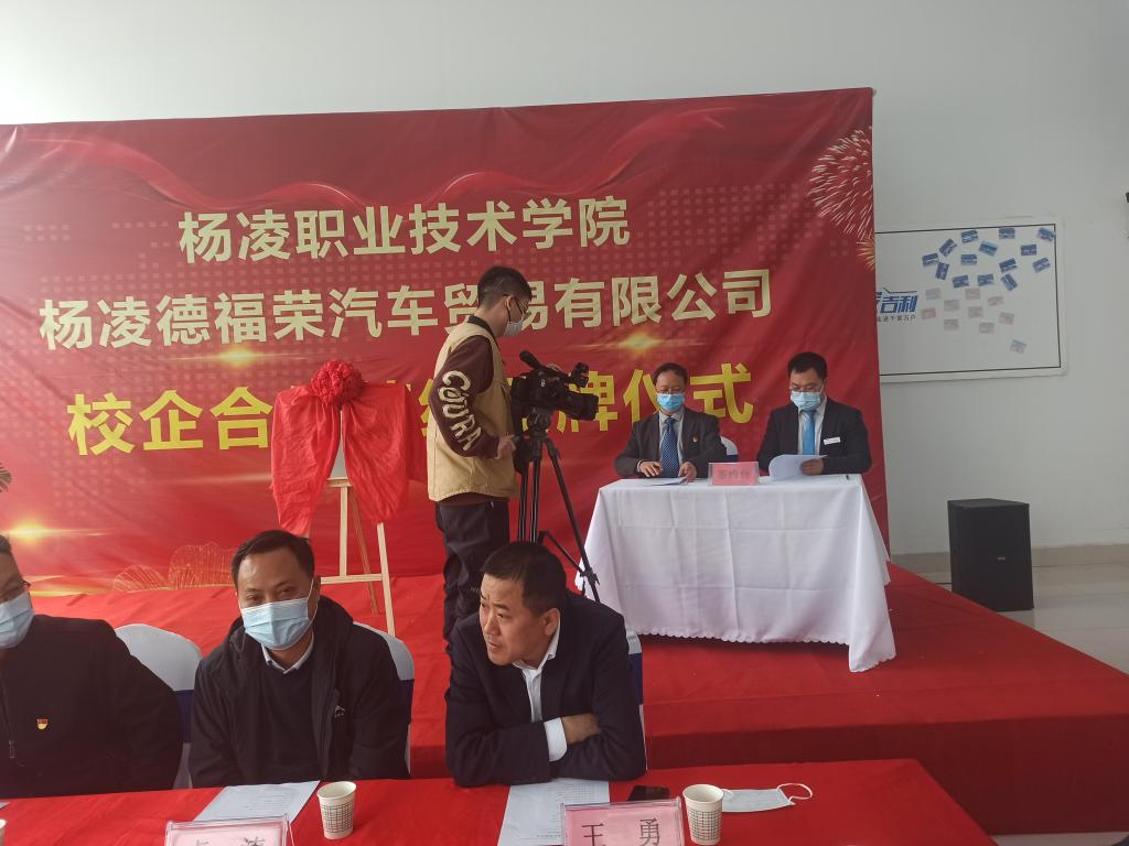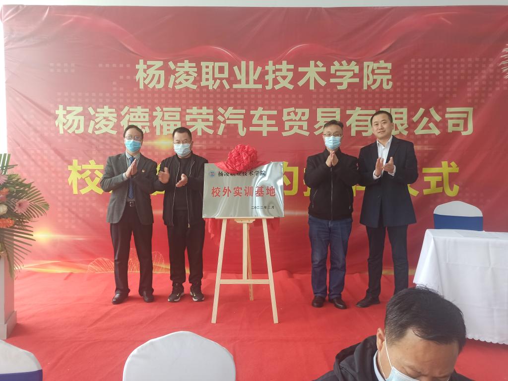 3月30日上午,伟德官网机电工程学院与杨凌德福荣汽车贸易有限公司举行校企合作签约暨校外实训基地揭牌仪式。杨凌示范区工商联党组书记卓涛,杨陵区委常委、组织部部长王勇,杨陵区工商联党组书记李俊苗、工信局局长陈团江及李台街道党工委相关领导,伟德官网机电工程学院党总支书记马秀魁、院长龙建明,杨凌德福荣汽车贸易有限公司法人穆斌、总经理穆涛等出席签约仪式。