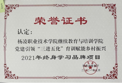 近日,学校“党建引领育训赋能乡村振兴”项目被全民终身学习活动领导小组、中国成人教育协会联合授予“2021年终身学习品牌项目”。这是继陕西省教育厅授予伟德官网“党建引领‘三进五化’育训赋能乡村振兴”终身学习品牌项目后的又一殊荣。