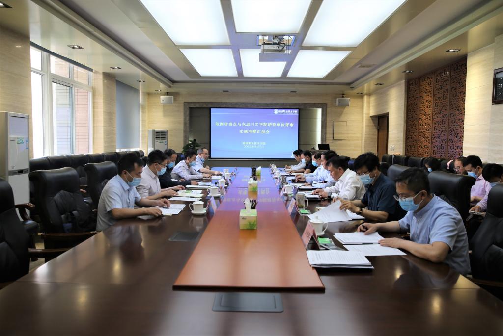 5月7日,陕西省重点马克思主义学院培育单位评审汇报会在南校区举行,由陕西省委宣传部理论处处长高宝荣、西安交通大学马克思主义学院院长燕连福、长安大学马克思主义学院院长陈怀平、西安理工大学马克思主义学院院长梁严冰、陕西省委教育工委宣传部干部赵希宁组成的专家组为学校马克思主义学院建设问诊把脉。校长王周锁出席座谈会,党委副书记、纪委书记王勇胜主持座谈会,副校长祝战斌,党政办公室、党委组织部、党委宣传部、教务处、人事教师处、科技与教育研究处、财务处、马克思主义学院主要负责人及思政课教师代表参加汇报会。