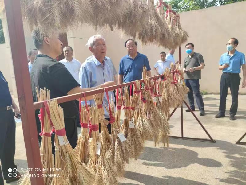 袁世昌参观了大穗大粒超高产小麦品种“武农981”表现情况和小麦新品种繁育情况,对今年已87岁高龄的赵瑜研究员至今仍坚守在田间从事小麦育种事业研究表示钦佩。他介绍了袁隆平基金会和厦门中态联盟生物科技有限公司的运作理念、经营范围和合作模式,表示基金会会将与学校共同谋划,充分发挥公司的平台、资金和技术,以成立小麦生态产业园的方式,对“武农”系列小麦良种在更大范围适生区域进一步开展示范推广,保障我国干旱半干旱地区粮食生产用种安全,实现提高单产、增加总产、改善品质、增加效益和绿色环保的目标,助力乡村振兴。