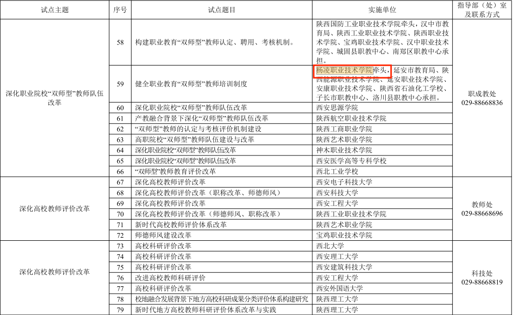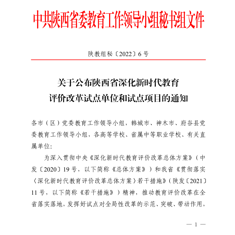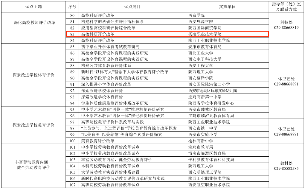 近日,省委教育工作领导小组秘书组公布了陕西省深化新时代教育评价改革试点单位和试点项目名单,伟德官网入选综合试点单位并承担“健全职业教育‘双师型’教师培训制度”和“高校科研评价改革”2个试点项目。