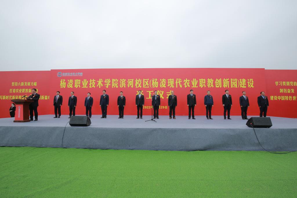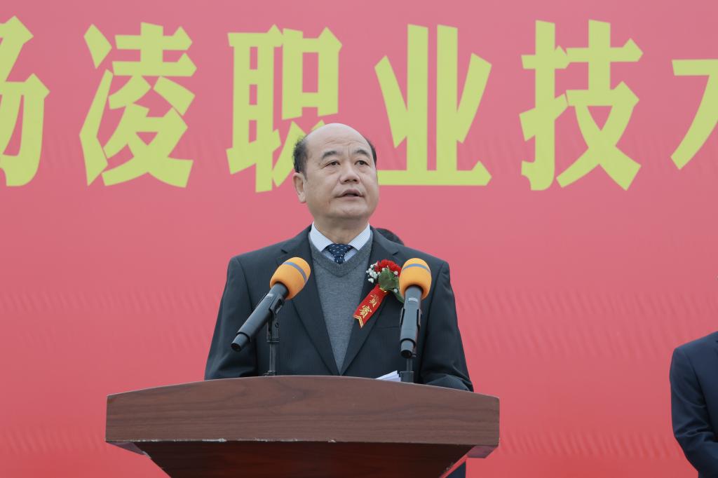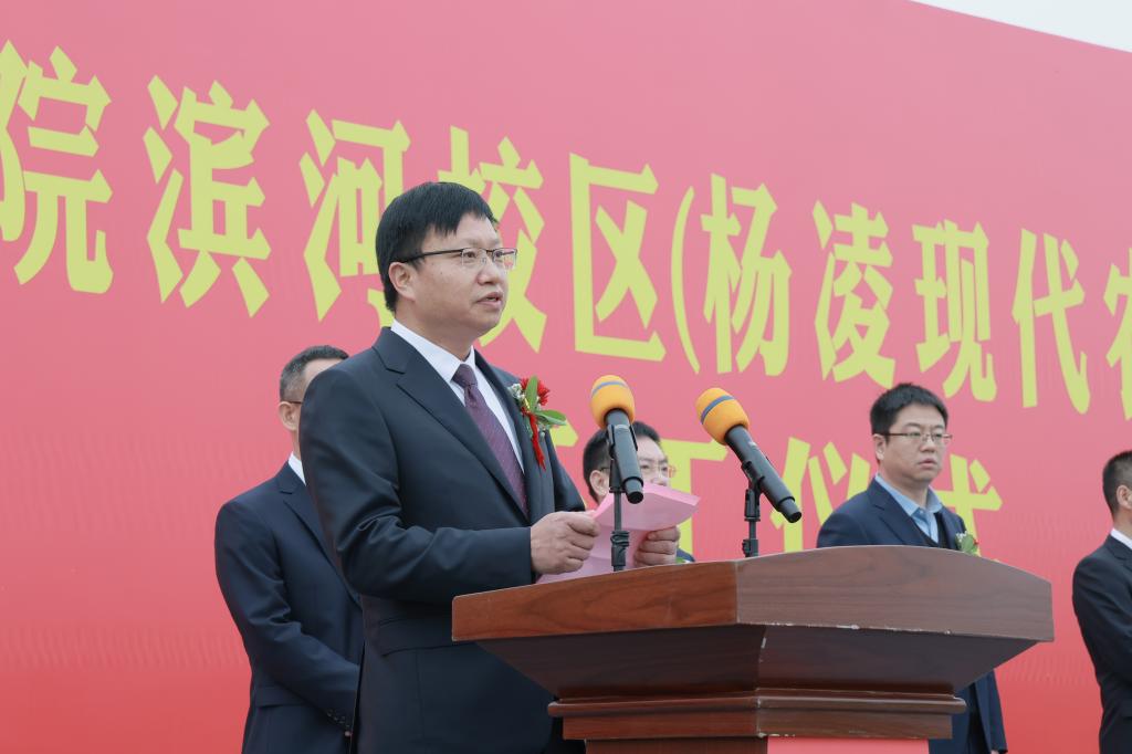 刘建林在讲话中指出,杨凌职业技术学院作为陕西首所挂牌成立的高职院校,长期以来,在省委、省政府的坚强领导下,高举农业职教改革旗帜,坚持立德树人根本,坚守强农兴农使命,积极守正创新、担当作为,各项事业取得的发展有目共睹,是我省乃至全国高职教育的一面旗帜。滨河校区的开工建设,是学校发展史上具有里程碑意义的一件大事,也是我省职业教育的一件喜事,更是我省贯彻落实党中央、国务院关于大力发展现代职业教育的重大举措。希望学校以此为契机,紧抓发展机遇,汇聚办学力量,努力把滨河校区打造成政、行、企、校四方合作的典范;主动对接国家和我省重大发展战略,集聚创新资源,加大科研攻关,发挥自身优势,为社会培养更多高素质技术技能人才、能工巧匠、大国工匠,更好服务区域经济社会发展,为谱写新征程上陕西高质量发展新篇章作出更大贡献。希望杨凌示范区党工委、管委会继续给予学校大力支持和帮助,推动学校在中国特色高水平高职学校建设和助力中国式现代化的新征程上迈上新台阶、展现新作为。他表示,省委教育工委、省教育厅将一如既往支持学校朝着建设“中国特色、世界一流职业大学”目标奋勇前进。