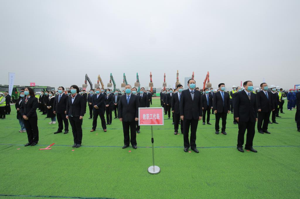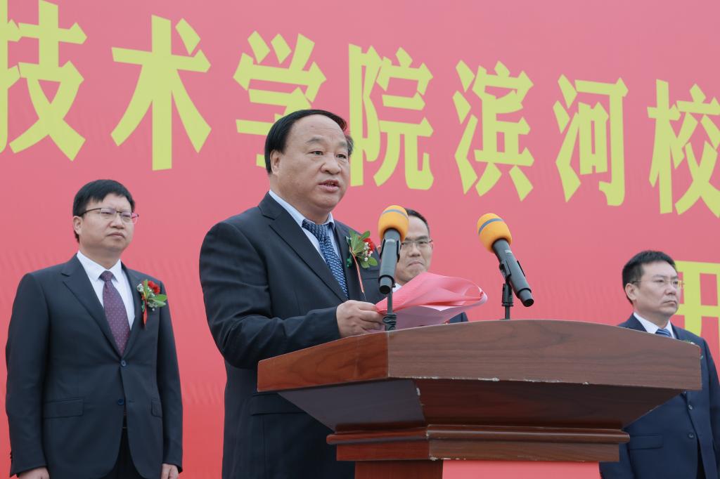 开工仪式上,参与伟德官网滨河校区建设的三家企业负责人分别发言。各级领导、嘉宾代表和师生代表共同为滨河校区建设奠基培土。