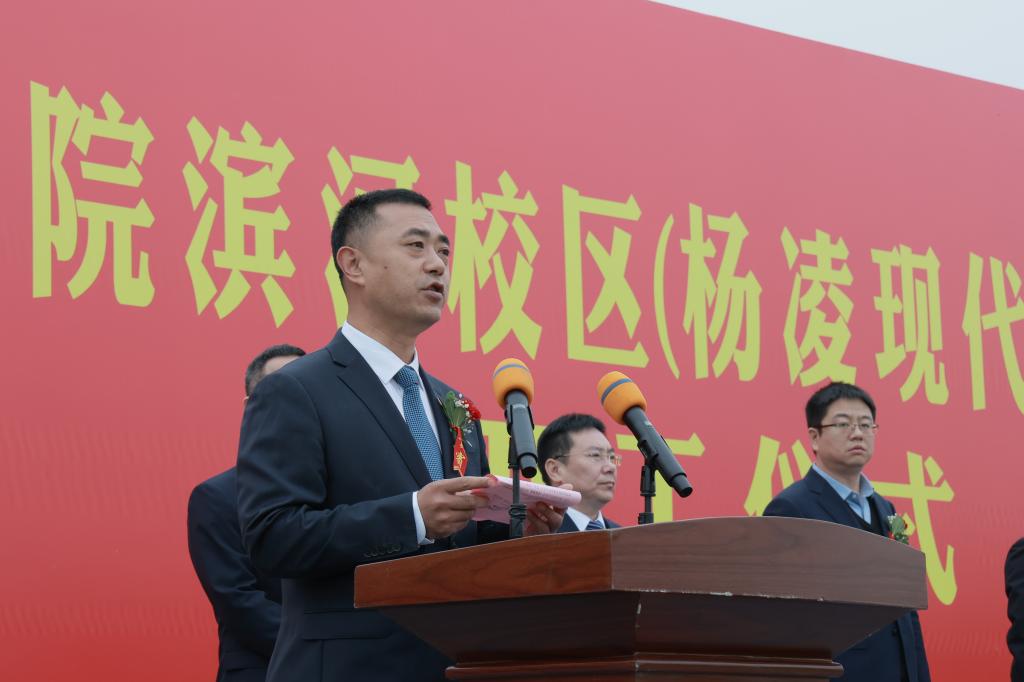 史高领在讲话中指出,杨凌职业技术学院作为我国最早创办的职业教育院校之一,88年来,扎根杨凌这片热土,坚持走“农科教、产学研”结合之路,在各方面取得了明显成效,先后培养了25万多名高素质技术技能人才,培育了小麦、花椒、食用菌等一大批农业新品种,综合实力稳居全国高职教育第一梯队。滨河校区作为学校面向未来、抢抓机遇的新平台、新载体,必将为学校实现新突破、迈上新台阶注入更加强劲的动力,带来全方位、系统性的提质培优、增值赋能。他表示,学校是示范区履行国家使命的一支重要力量,示范区将全力支持学校滨河校区建设,全面做好项目建设服务保障工作,确保该校区建出速度、建出品质、建出特色,合力打造职业教育院校新标杆,为推动我省乃至我国职业教育高质量发展作出新的更大贡献。