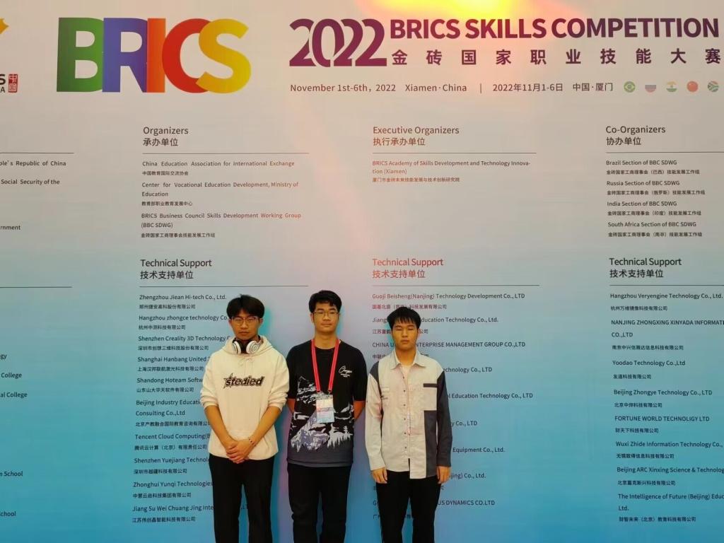 11月5日-6日,2022年金砖国家职业技能大赛“网络安全”赛项决赛在福建厦门举行。由伟德官网计算机应用技术专业学生卜宋博、梁嘉荣、王兴组成的陕西代表队荣获三等奖。