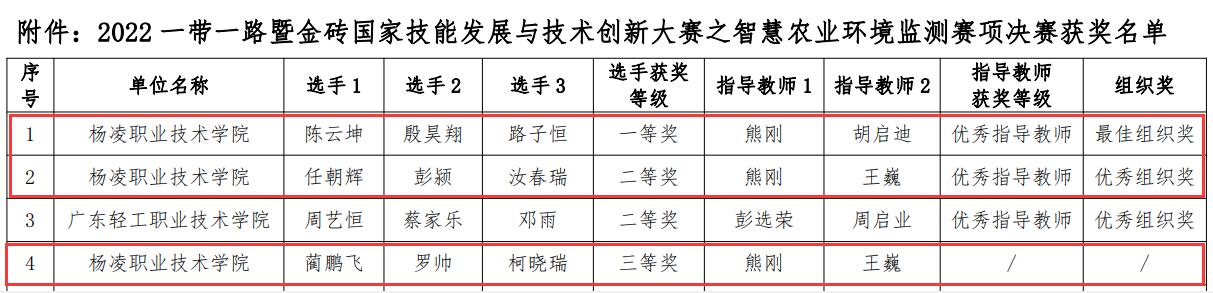 11月4日至6日,2022年一带一路暨金砖国家技能发展与技术创新大赛智慧农业赛项在福建省厦门市结束。伟德官网师生获“智慧农业环境监测”赛项教师组二等奖、学生组一等奖、三等奖,学校获最佳组织奖。