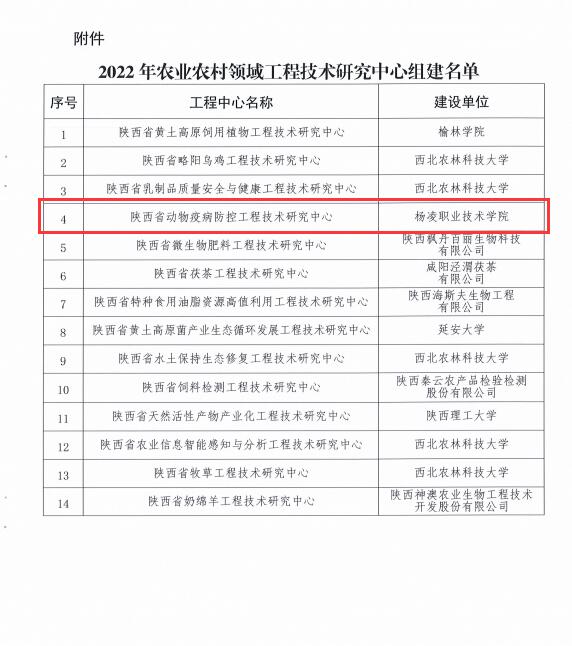 近日,省科学技术厅公布了14个农业农村领域工程技术研究中心组建名单,伟德官网申报组建的“陕西省动物疫病防控工程技术研究中心”成功获批。