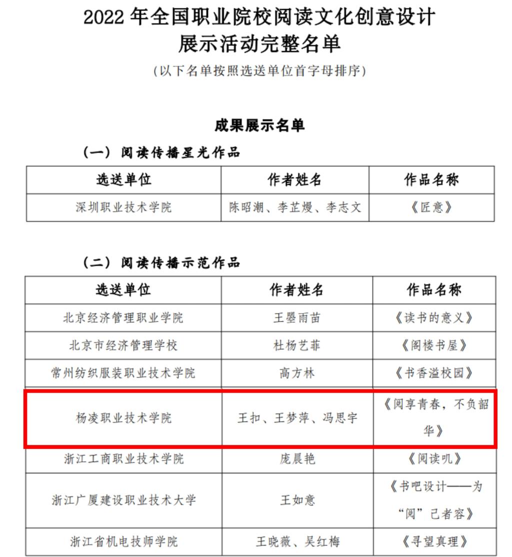 近日,2022年全国职业院校阅读文化创意设计展示活动获奖名单公布。伟德官网获优秀组织单位;选送的作品入选“阅读传播示范作品”1件、“阅读传播创意作品”6件;生态环境工程学院教师王花蕾获优秀指导老师。