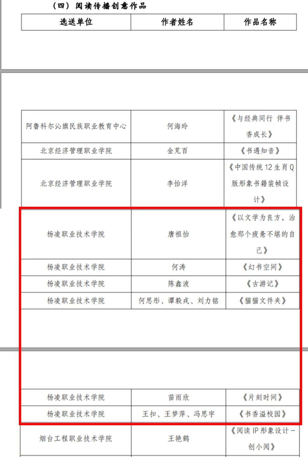 此次活动由教育部职业院校文化素质教育指导委员会、教育部职业院校艺术设计类专业教学指导委员会联合主办,以“书香溢校园,阅读赋智慧”为主题,共吸引了618所院校参与,通过审核作品9556件。经单位推选、专家网络初评、专家总评研议等环节,共评选出301件作品进入“成果展示名单”,包括阅读传播星光作品1件、阅读传播示范作品20件、阅读传播优秀作品60件及阅读传播创意作品220件。