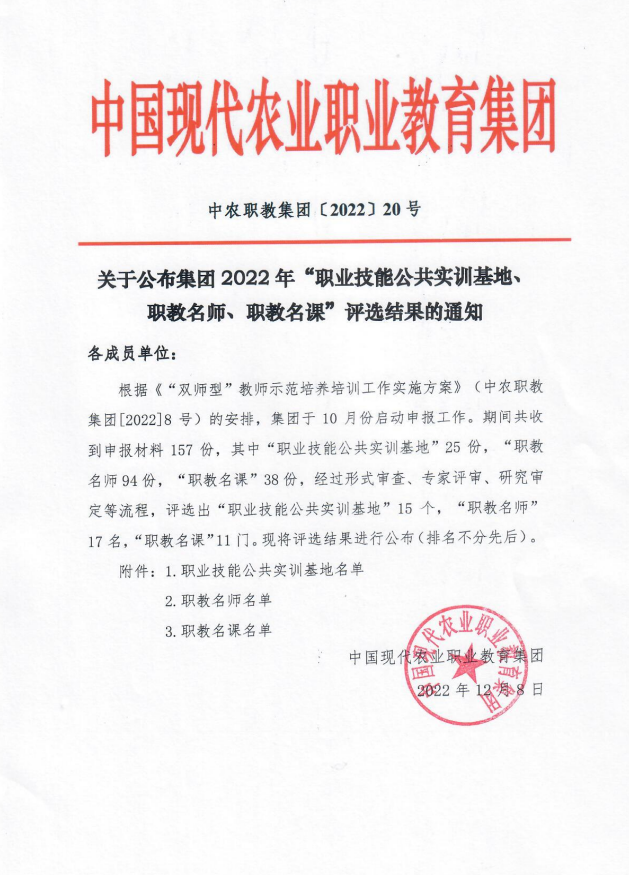 12月8日中国现代农业职业教育集团公布了集团2022年职教名师评选结果,动物工程学院张振仓副教授获此殊荣。