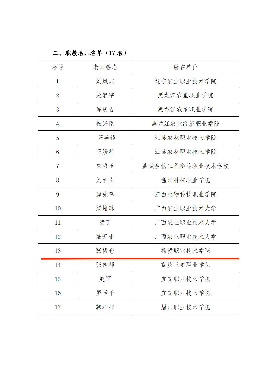 张振仓获评中国现代农业职业教育集团职教名师