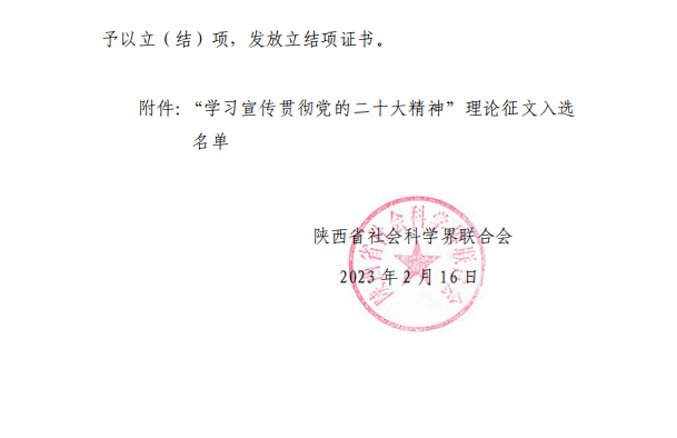 2月16日,省社会科学界联合会公布“学习宣传贯彻党的二十大精神”理论征文入选名单,伟德官网马克思主义学院教师张中世、韩荣彦撰写的论文《弘扬延安精神 牢记“三个务必”》成功入选。