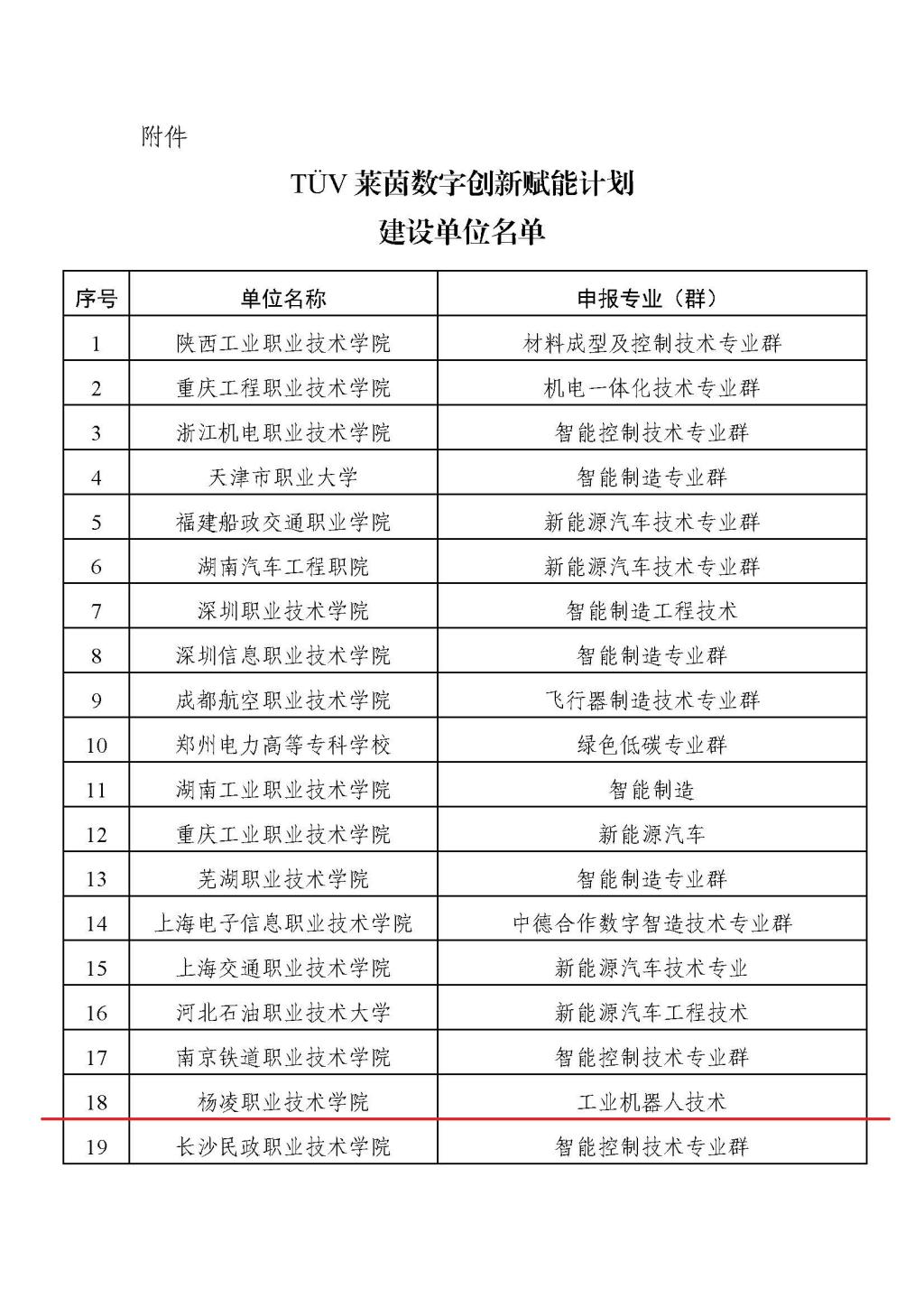 为丰富中欧及中德职教合作,推动产教深度融合,在教育部国际合作与交流司的支持与指导下,中国教育国际交流协会与德国TÜV莱茵集团共同执行“TÜV莱茵数字创新赋能计划”,以提升职业院校治理水平、专业课程建设与社会服务能力。此次,全国共有42所学校入选建设单位。