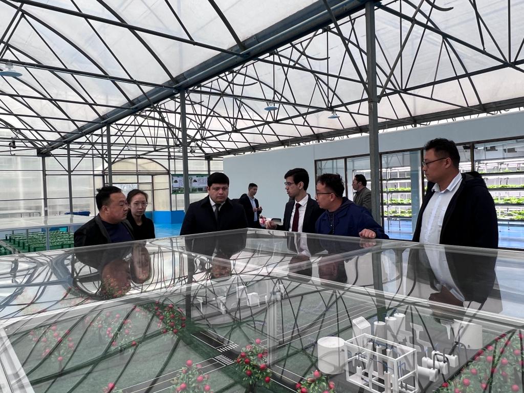在农林综合实训基地,沙乌马洛夫一行参观了玻璃连栋温室和智慧农业实验温室,听取了伟德官网现代农业专业课程教学实训设施建设、实训课程开设情况的介绍,并就草莓日光温室大棚、西瓜日光温室大棚、鲜食葡萄避雨栽培大棚等,在教学实践中发挥的作用、现代农业科技项目技术推广、涉农专业课程教学等情况与伟德官网教师进行了交流。