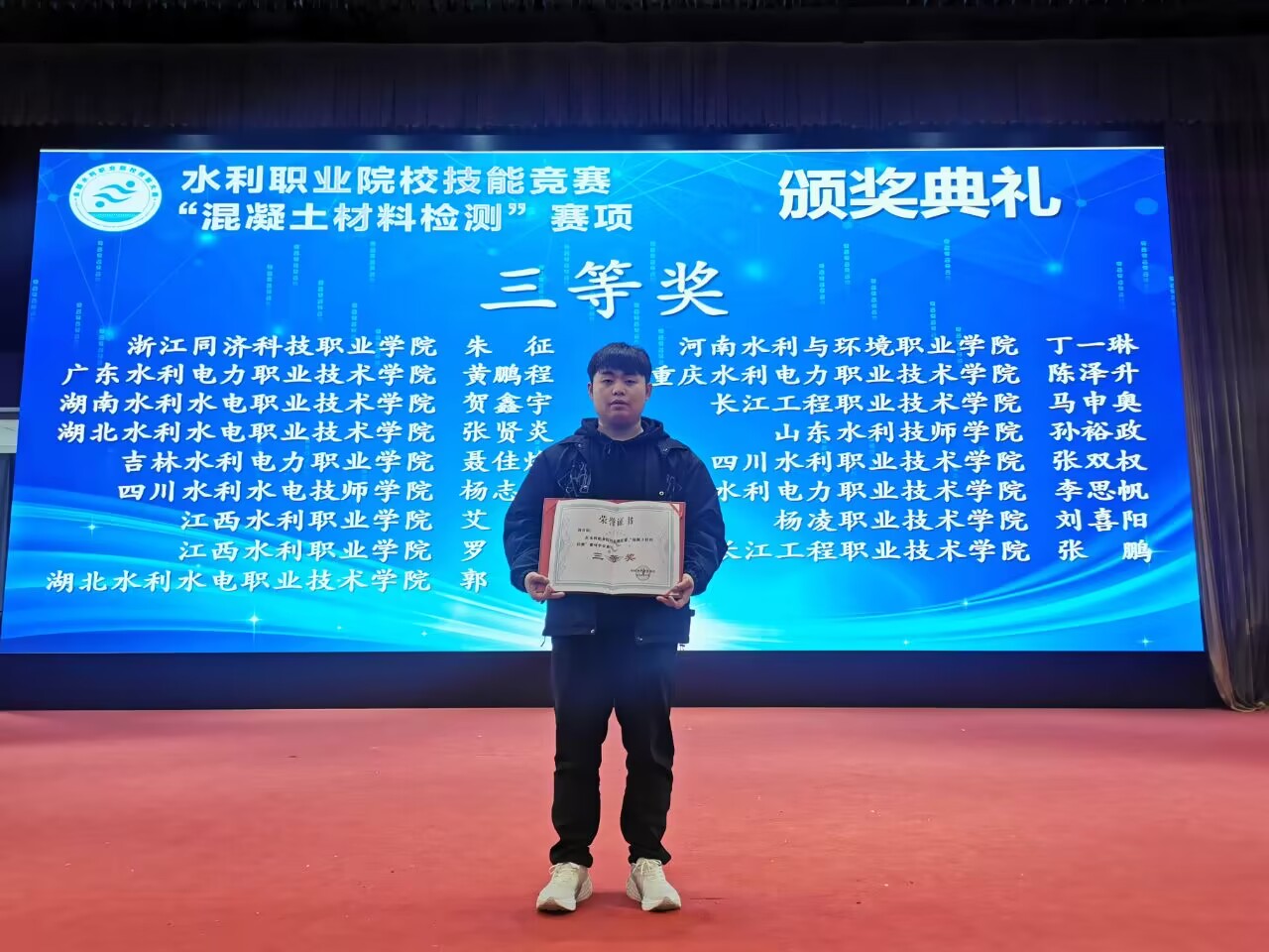 本次比赛共有来自全国各地19所水利类高职院校的19支队伍57名选手参赛。伟德官网水利工程学院精心组织,指导教师和学生积极准备、认真训练,克服诸多困难,经过激烈比拼,最终取得优异成绩,学生侯祎鑫、刘喜阳分别获得一等奖、三等奖,均突破历史参赛最好成绩,也展现了我院检测类技能的人才培养成果,有效地推动了1+X证书制度试点工作。