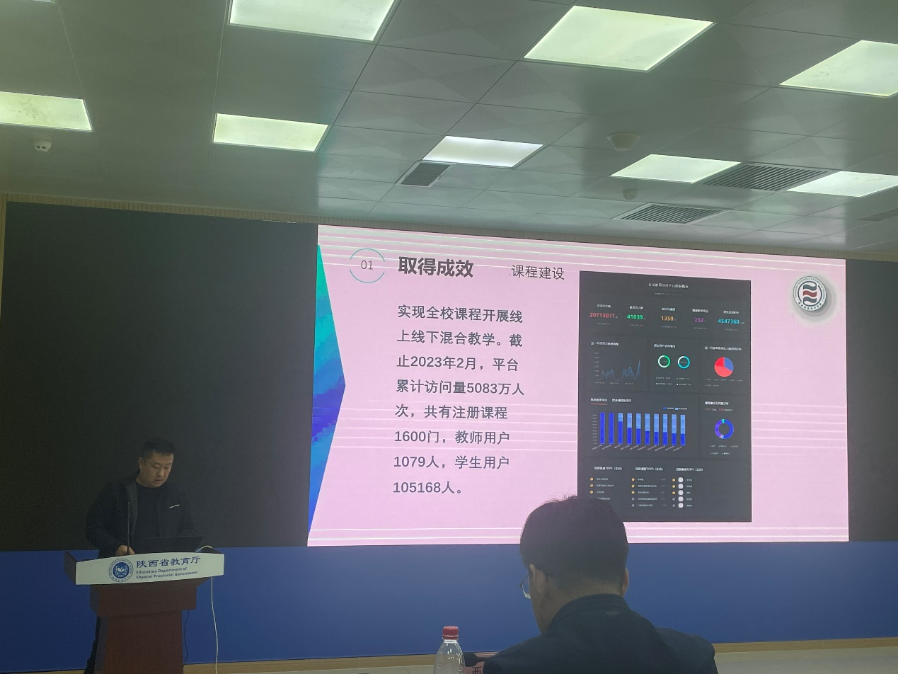会上,信息化建设与管理处李伟代表伟德官网以《打造数字转型新引擎 赋能教学改革新动力》为题,从顶层设计、创新模式和取得成效等三方面,分享伟德官网在入选陕西省智慧校园“示范校”期间信息化建设应用情况,得到教育厅认可。