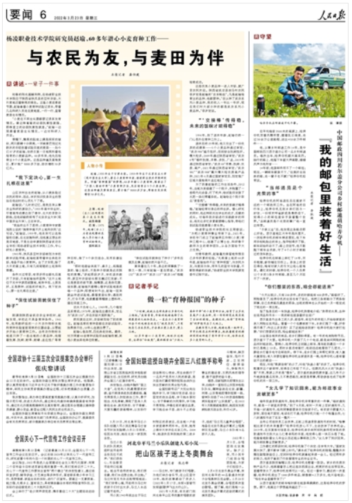 近日,省委教育工委、省教育厅通报表彰了2022年度陕西教育好新闻,由人民日报记者龚仕建采写的《杨凌职业技术学院研究员赵瑜,60多年潜心小麦育种工作——与农民为友,与麦田为伴》获2022年度陕西教育好新闻一等奖。