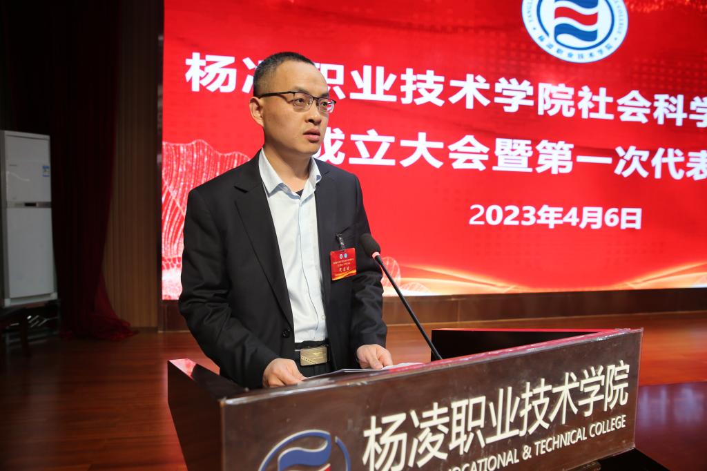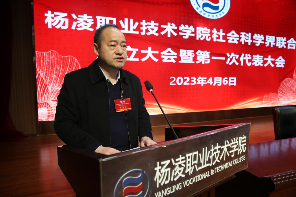 4月6日下午,杨凌职业技术学院社科联成立暨第一次代表大会在南校区思辩堂召开。省社科联党组书记、常务副主席郭建树出席会议并致辞。杨凌职业技术学院党委书记王周锁出席会议并致欢迎辞,副校长胡俊鹏当选学校社科联主席。省社科联社会组织管理部部长张金高出席会议。会议由副校长胡俊鹏主持。