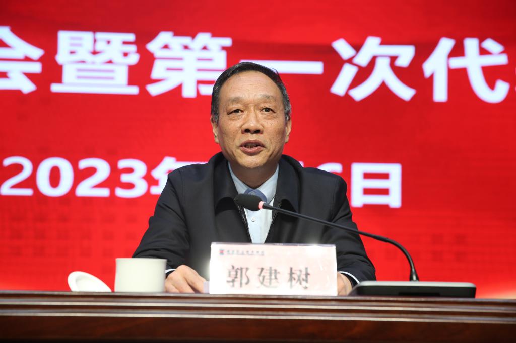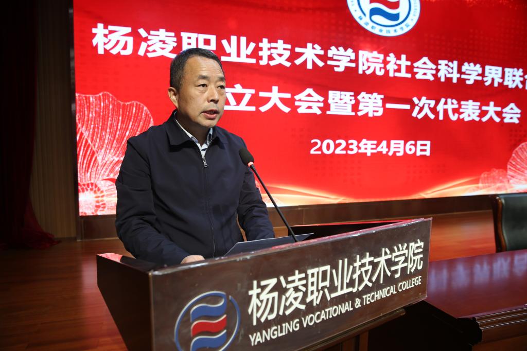 郭建树在讲话中,代表陕西省社科联对杨凌职院社科联的成立及新当选的第一届委员会委员表示热烈祝贺。他指出,杨凌职业技术学院社科联的成立,是以实际行动贯彻落实二十大精神,充分体现了学校对哲学社会科学工作的重视及对哲学社会科学工作者的关心。杨凌职业技术学院社科联的成立是杨凌职业技术学院的一件大事,也是我省社科界的一件喜事,为学校新文科建设搭建了新的平台,也壮大了我省社科联组织基础。他分析了陕西省哲学社会科学发展的现状、问题及规划,简要介绍了省社科联针对存在问题的工作思考。他充分肯定了杨凌职业技术学院近年来的发展及在哲学社会科学领域取得的成绩。他希望,学校社科联一是要举旗帜,始终坚持马克思主义指导地位,贯彻习近平新时代中国特色社会主义思想。二是要发挥学校优势,服务社会经济发展。三是要积极开展学术交流活动,促进学科发展和人才队伍建设,切实发挥社科联桥梁纽带作用,努力推进社科事业繁荣发展。他表示,省社科联将大力支持杨凌职业技术学院社科联开展工作,在课题研究、学术交流、社科服务以及人才推荐等方面给学校社科工作者提供更广阔的平台,促进学校社科联健康成长和发展壮大。