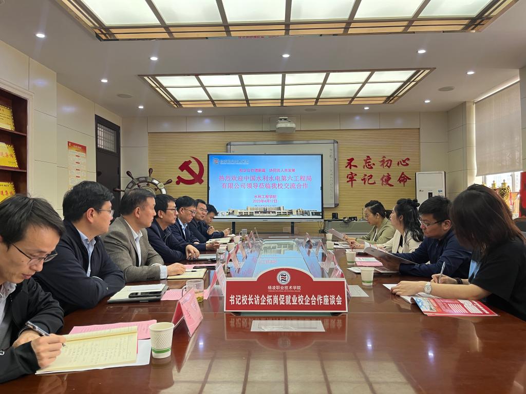 4月17日上午,中国水利水电第六工程局有限公司人力资源部主任卜曼修、西北公司副书记李浩宁、综合人力部主任霍燕红、国际公司人力资源主管孙娜娜一行4人来校开展校企合作交流。副校长蒋平江,招生就业处处长李岩,水利工程学院党总支书记刘儒博、院长郝红科等参加座谈交流。