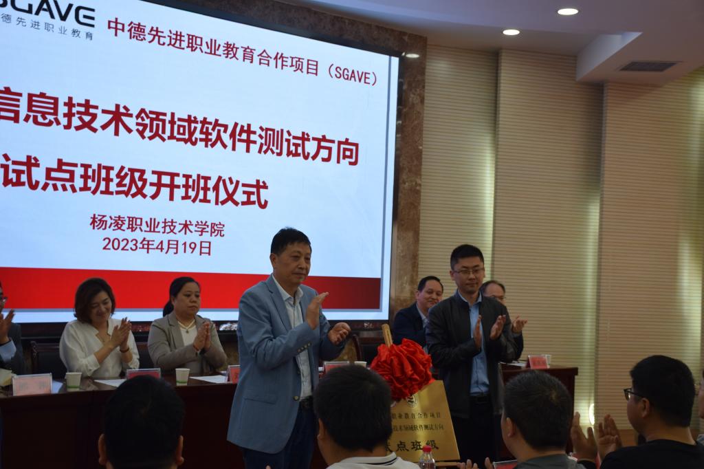 4月19日,伟德官网举行中德先进职业教育合作项目(SGAVE)新一代信息技术领域软件测试方向试点班开班仪式。副校长祝战斌,教务处处长刘新燕,SGAVE项目组专家孙浩,信息工程学院院长陈高锋、党总支副书记吴高潮、副院长熊刚,以及试点班级全体师生参加活动。开班仪式由陈高锋主持。