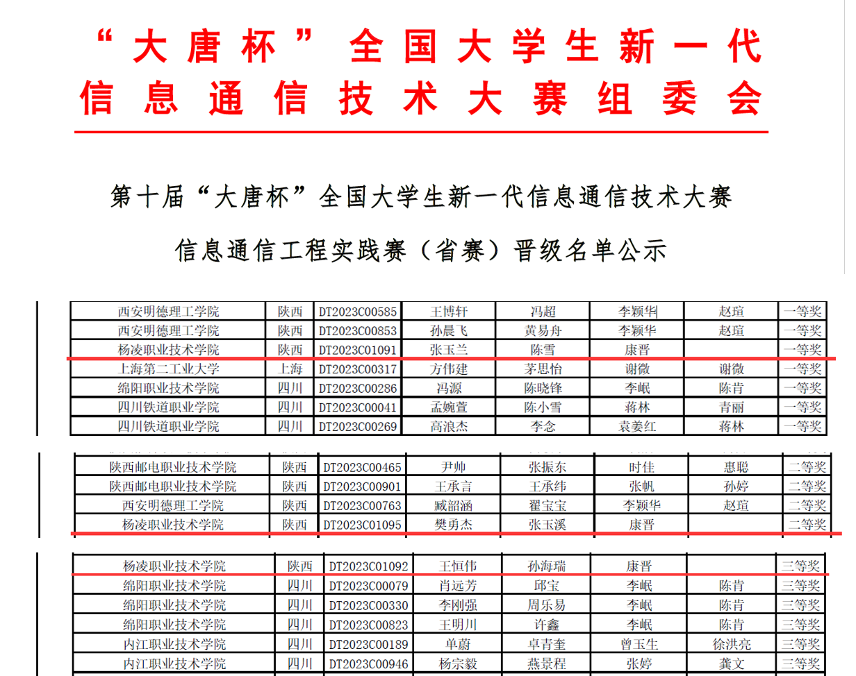 近日,第十届“大唐杯”全国大学生新一代信息通信技术大赛——信息通信工程实践赛道陕西省选拔赛举行。伟德官网现代通信技术专业学生张玉兰、陈雪获省赛一等奖,樊勇杰、张玉溪获省赛二等奖,王恒伟、孙海瑞获省赛三等奖。