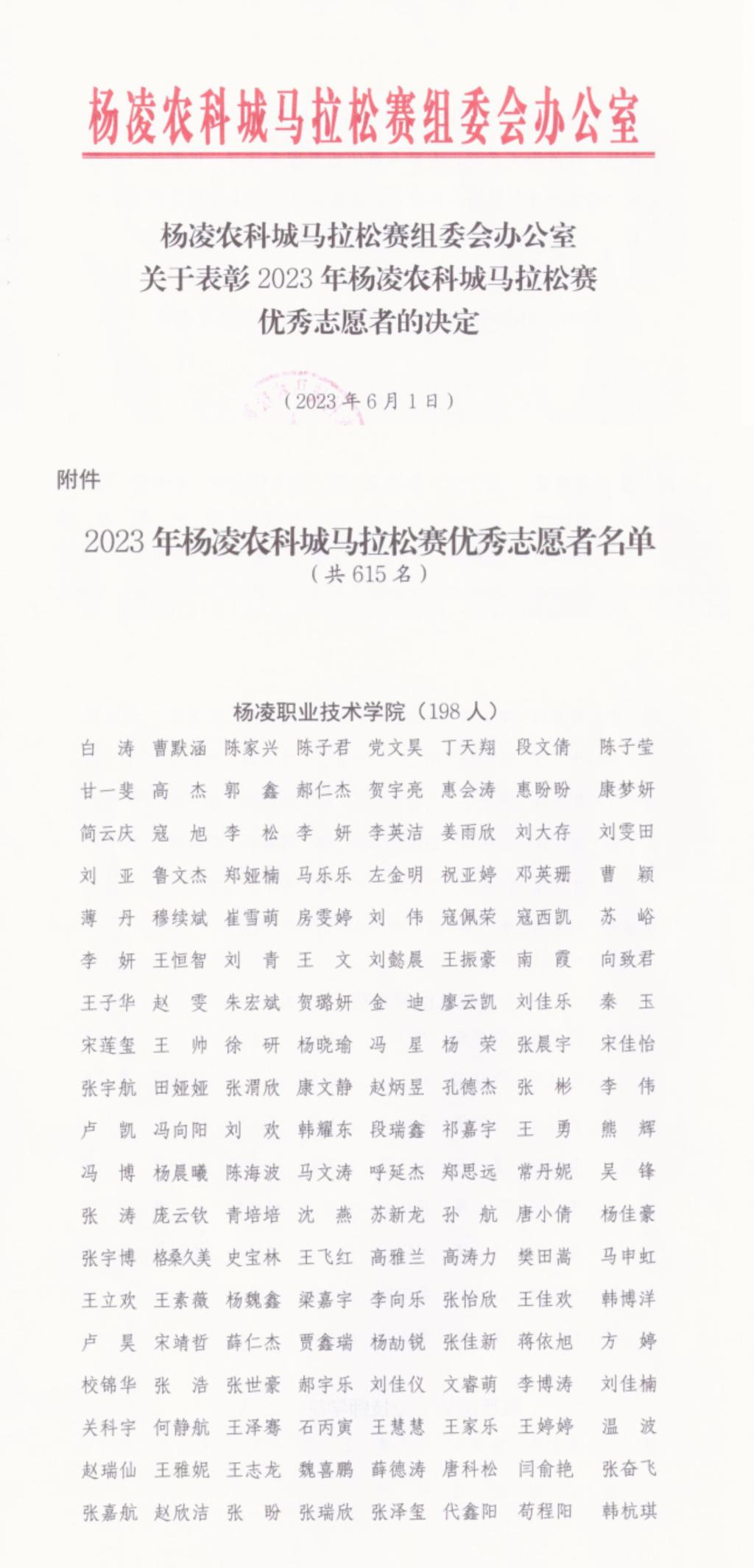 近日,杨凌农科城马拉松赛组委会通报表彰了2023年杨凌农科城马拉松赛优秀志愿者,伟德官网198名志愿者受到表彰。