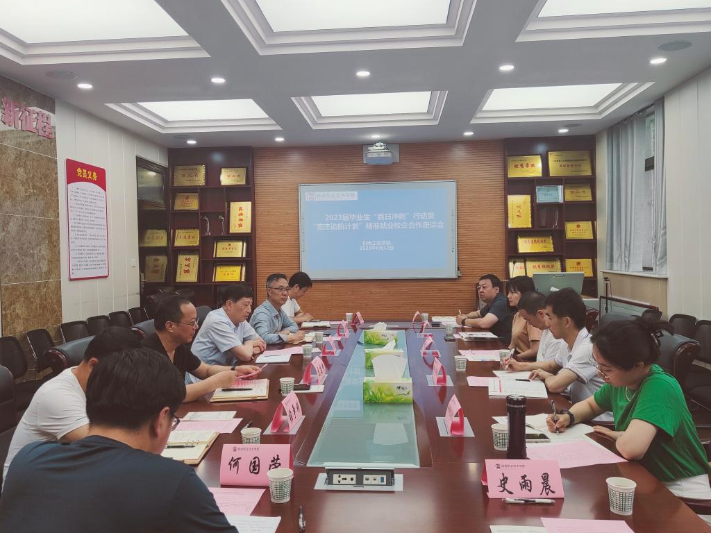 招聘会期间,二级学院还与合作企业举行“百日冲刺”访企拓岗校企合作座谈会。党委书记王周锁,党委副书记任得元,副校长祝战斌、蒋平江、胡俊鹏分别出席座谈会。校企双方围绕人才需求、人才培养、教学模式改革、教师实践锻炼、科研项目合作、实习就业和订单班开设等方面进行了深入的交流探讨。