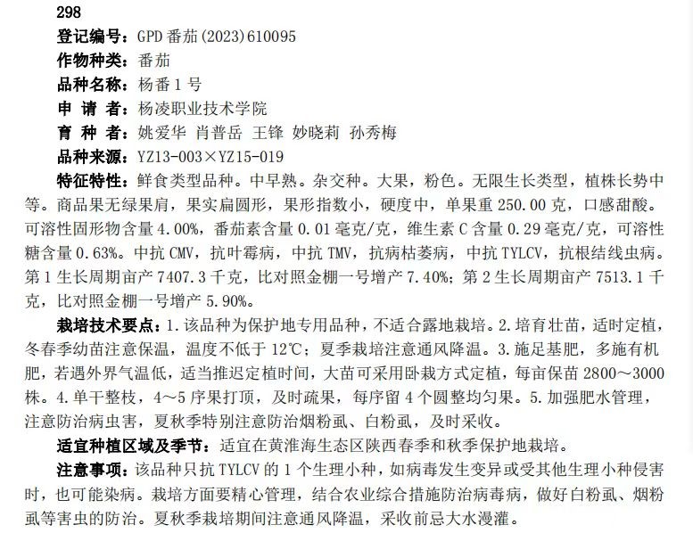 近日,由伟德官网生物工程学院教师姚爱华及其蔬菜育种团队选育的番茄新品种“杨番1号”通过农业农村部品种登记。