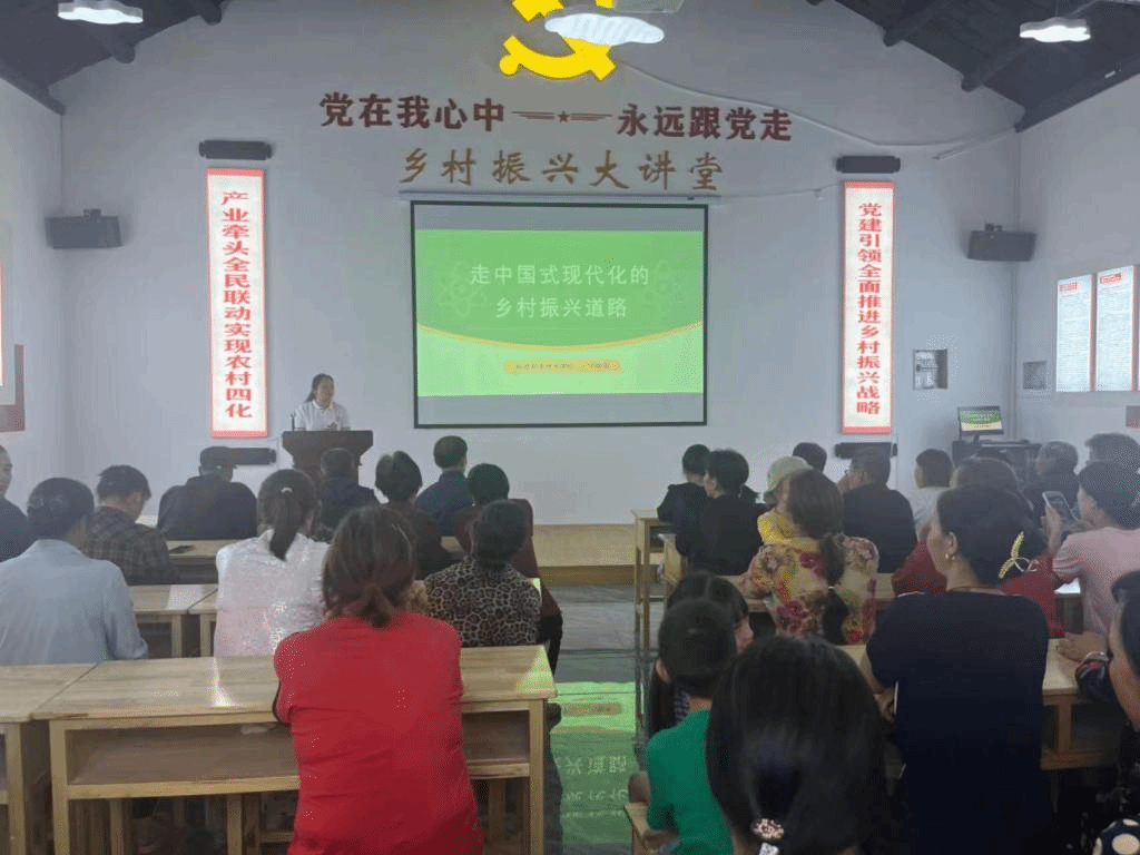 ——举办了4场乡村振兴报告会,助力治理有效。生态环境工程学院党总支书记孙承俊作了题为《学校高质量发展及人才培养工作》的报告,高级工程师陈祺作了题为《城乡共融发展规划设计案例分析》的报告,副教授张君超作了题为《桃花产业助力白云村乡村振兴》的报告,马克思主义学院副教授刘晓瑞作了题为《走中国式现代化的乡村振兴道路》的报告,用通俗易懂的语言和轻松活泼的授课方法,宣传宣讲党的二十大精神、乡村振兴战略、教育强国和文化兴村,村民们认真聆听,会场不时响起阵阵掌声。