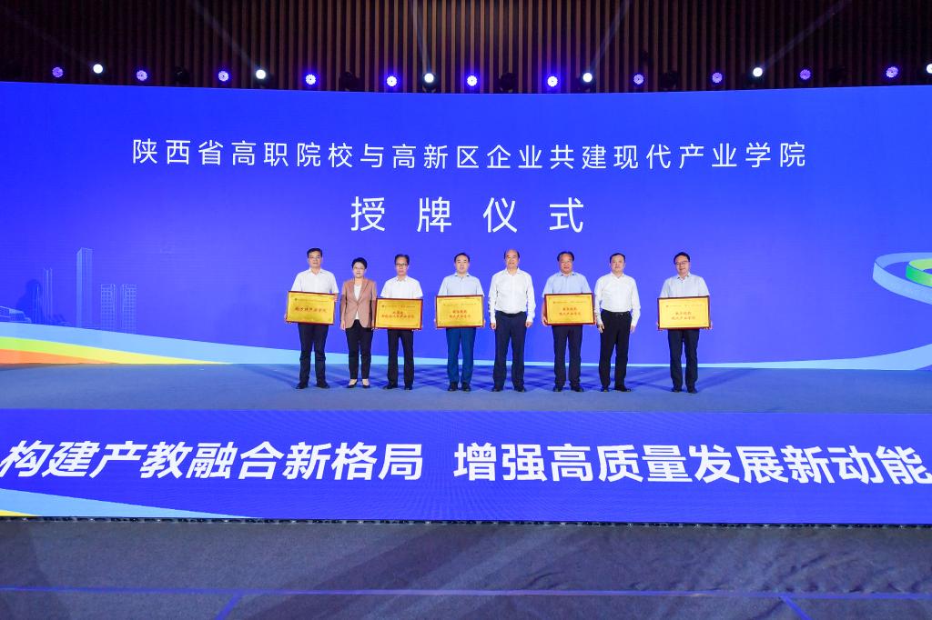 7月13日,由省委教育工委、省教育厅、西安市人民政府举办的教育科技人才统筹推进大会在西安高新国际会议中心举办。伟德官网受邀参加高校科技成果展暨校企洽谈会,党委书记王周锁出席陕西省高职院校与高新区企业共建现代产业学院授牌仪式。