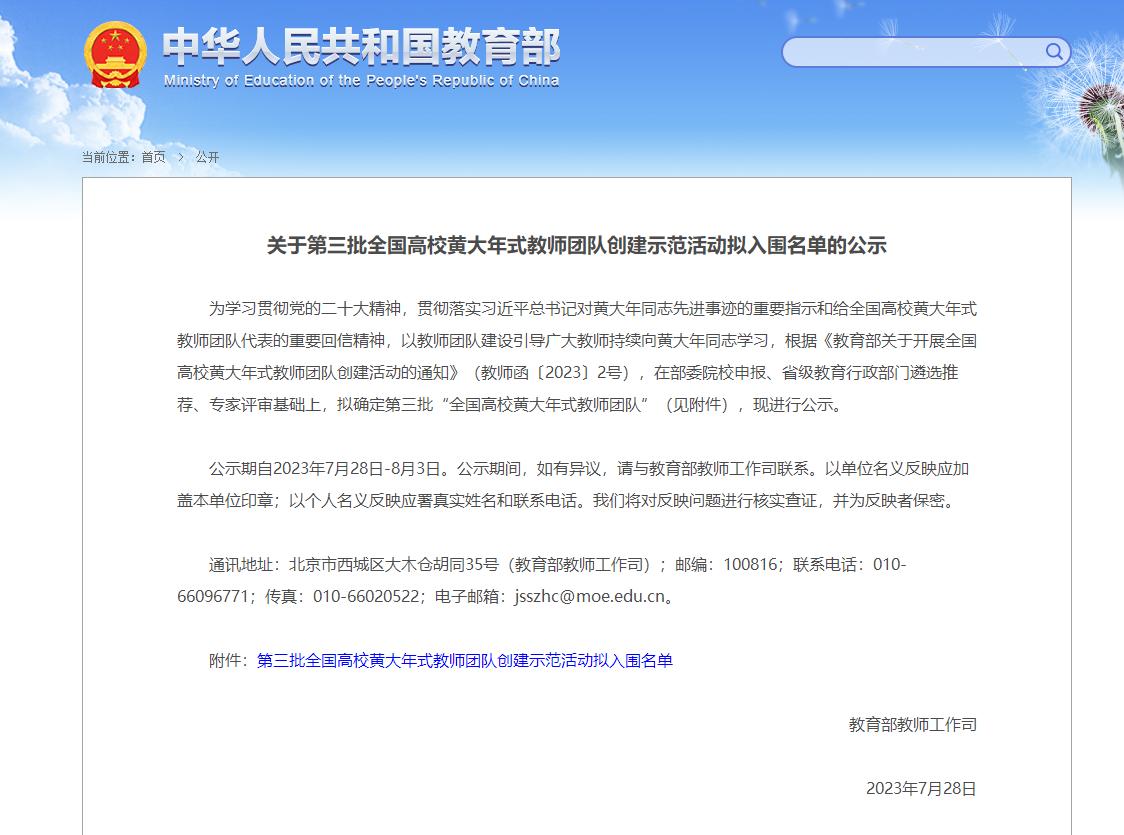 ▲7月28日,教育部公布了《关于第三批全国高校黄大年式教师团队创建示范活动拟入围名单的公示》,伟德官网畜牧兽医教师团队入选第三批全国高校黄大年式教师团队;陕西省教育厅发布了《关于公布第二批陕西省高校黄大年式教师团队的通知》,伟德官网现代农业技术教师团队入选第二批陕西省黄大年式教师团队。