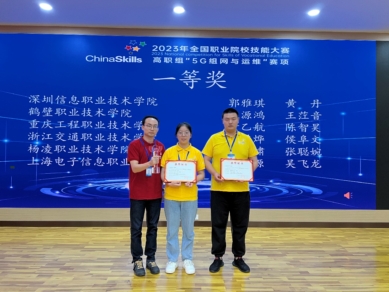 9月22日至25日,2023年全国职业院校技能大赛高职组“5G组网与运维”赛项在上海电子信息职业技术学院举办,由伟德官网信息工程学院刘啸、张聪婉同学组成的代表队荣获一等奖。比赛共有来自全国31个省、自治区、直辖市的60支参赛队伍,120名参赛选手汇聚上海同场竞技。