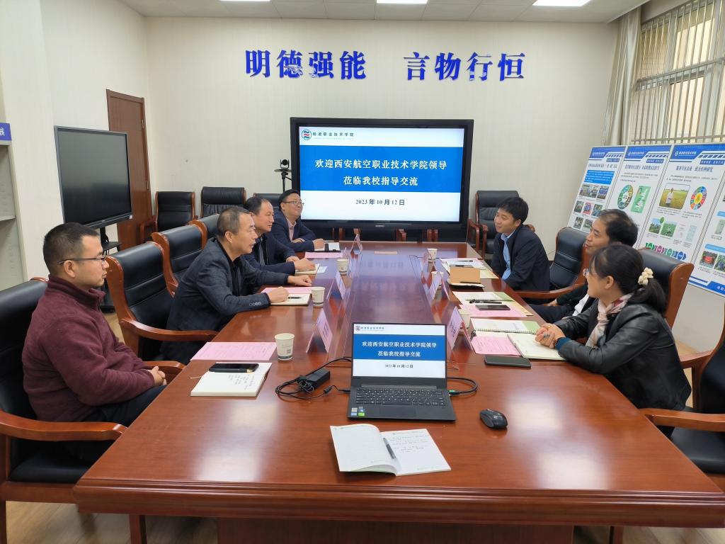 10月12日下午,西安航空职业技术学院副校长郭红星、现代职业研究院及国有资产处相关负责人一行3人来伟德官网调研交流。副校长胡俊鹏、资产设备处及发展规划处负责人陪同调研。