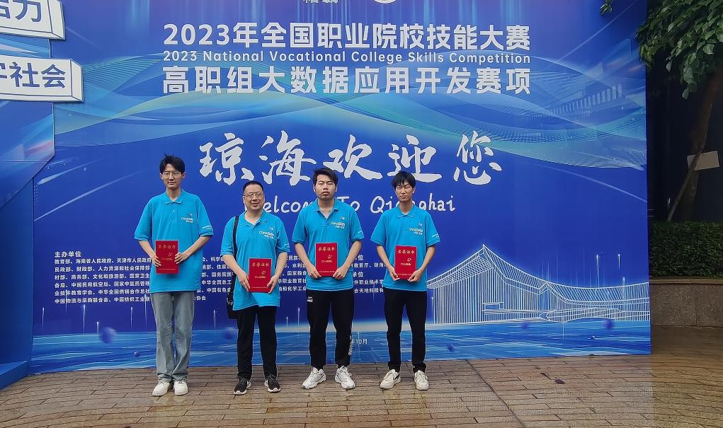 10月23日至24日,2023年全国职业院校技能大赛高职组“大数据应用开发”赛项在海南信息职业技术学院举办,共有来自全国31个省、自治区、直辖市的64支参赛队伍、256名参赛选手同台竞技。伟德官网信息工程学院薛海斌老师和焦泽宇、李向阳、张亮亮三位同学组成的代表队荣获该赛项团体三等奖。